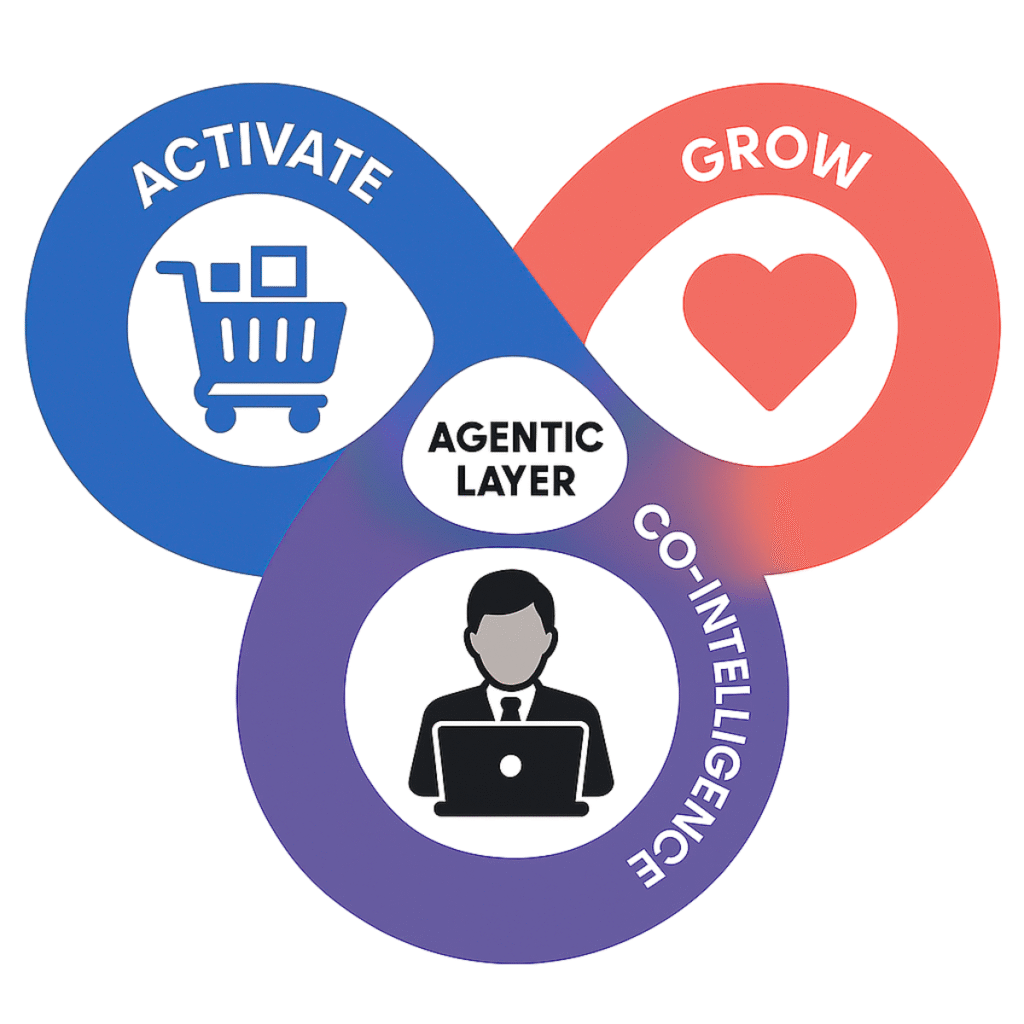 Agentic Engagement is the smart layer that connects people and brands – reacting in real time to guide actions, like a growth-focused nervous system.